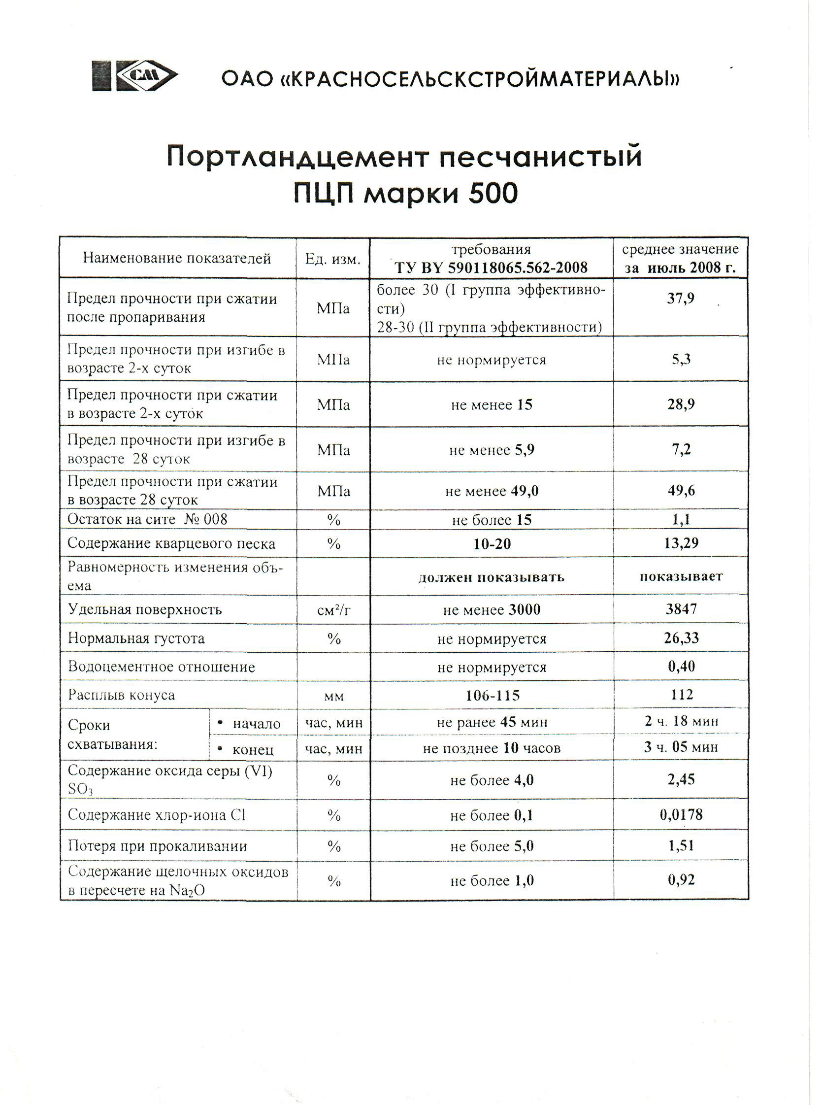 с официальным открытием белорусского цементного рынка, нам открылись также некоторые интересные марки и виды цемента, например пцп 500 (песчанистый портландцемент). такой вид цемента в россии не производится. кроме того, что пцп имеет ряд особенностей, по характеристикам он мало чем отличается от пц м500 д0. Зато цена на него гораздо ниже! [url]http://nic-trade.ru/docs/passport-pcp500.jpg[/url] - паспорт качества псковский завод жби-1 провел экспертизу пцп 500. в результате выяснилось, что пцп 500 вполне подходит для производства жби того же качества, что и при использовании цемента марки м500 д0. звоните, если нужен пцп 500 |